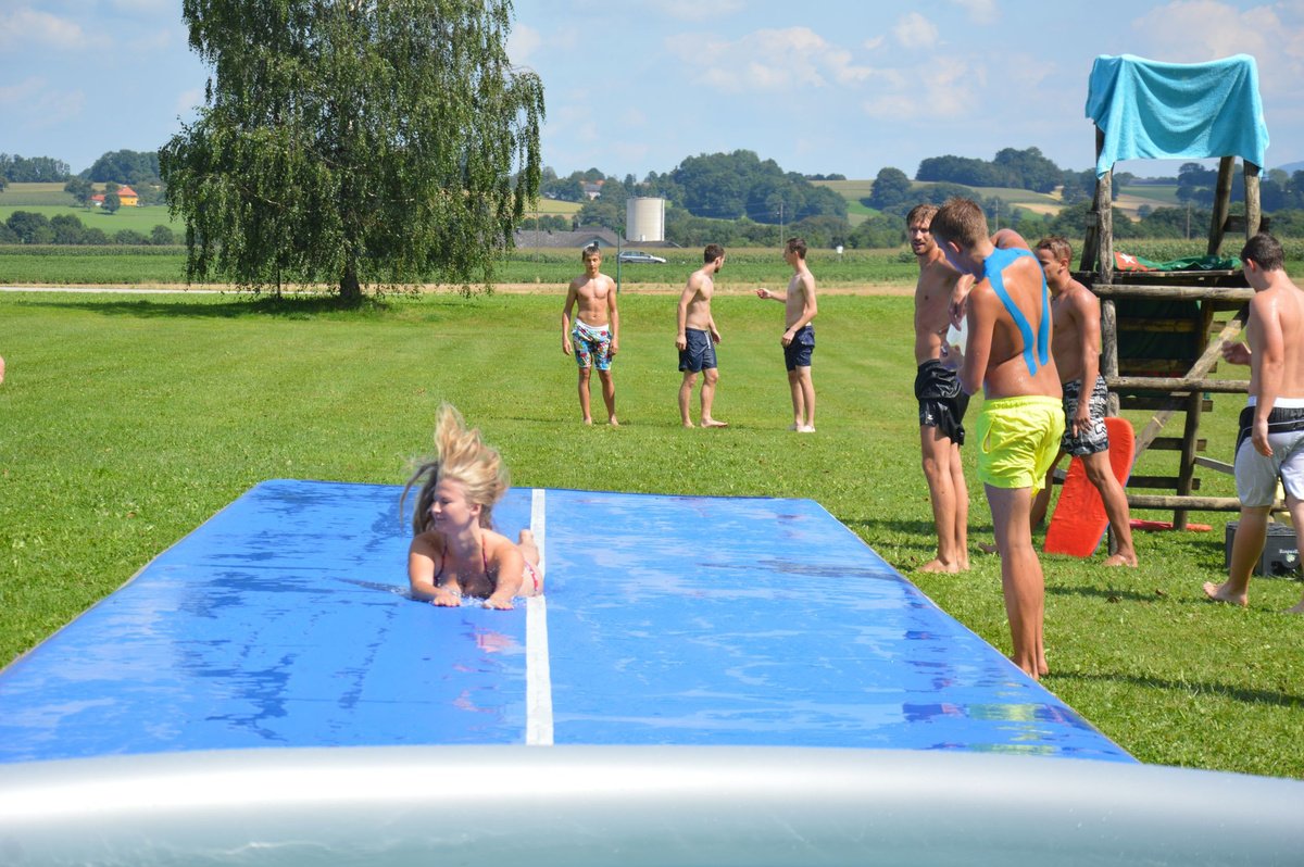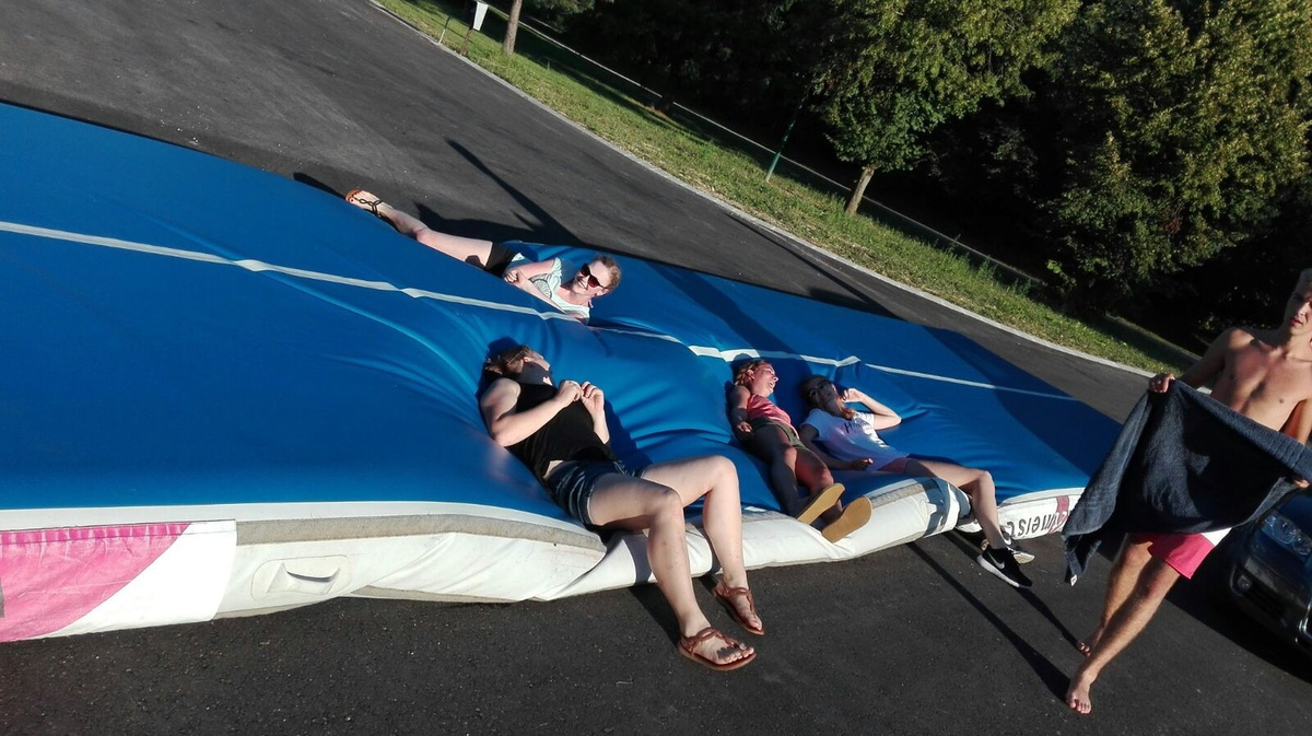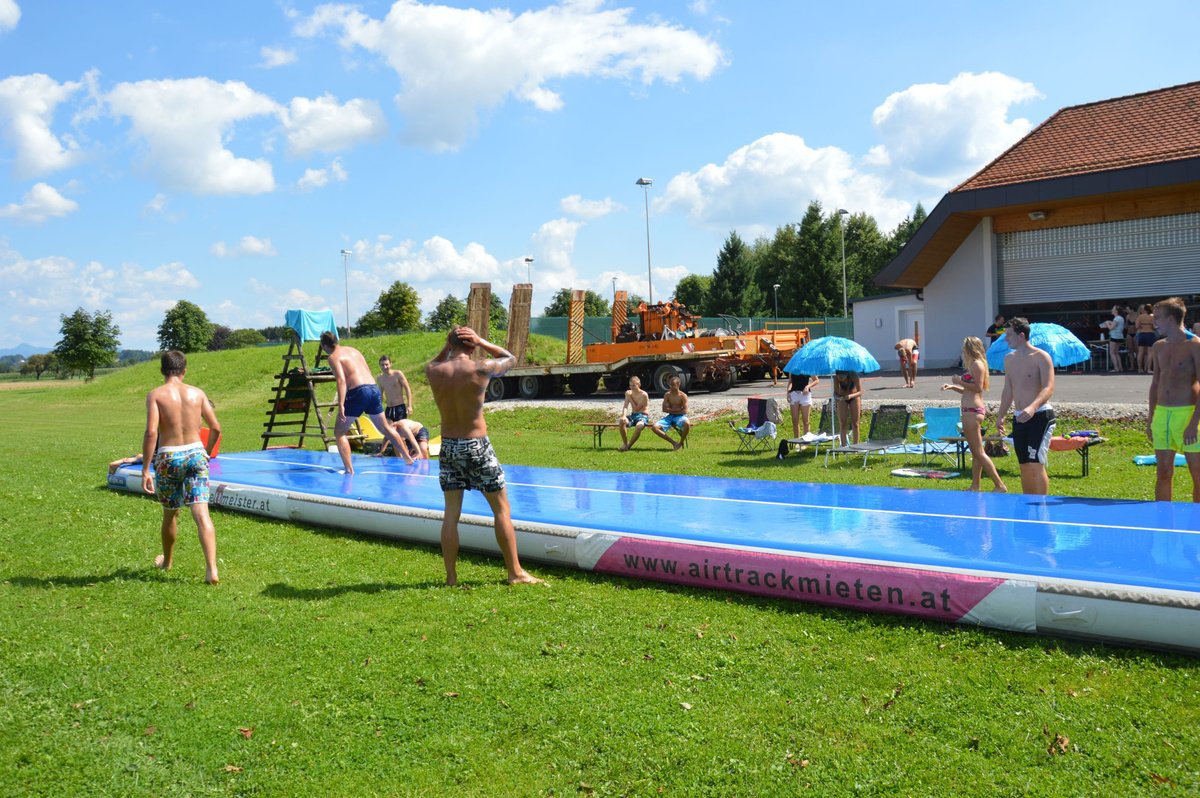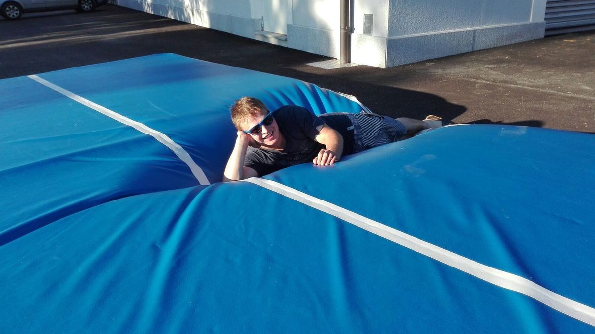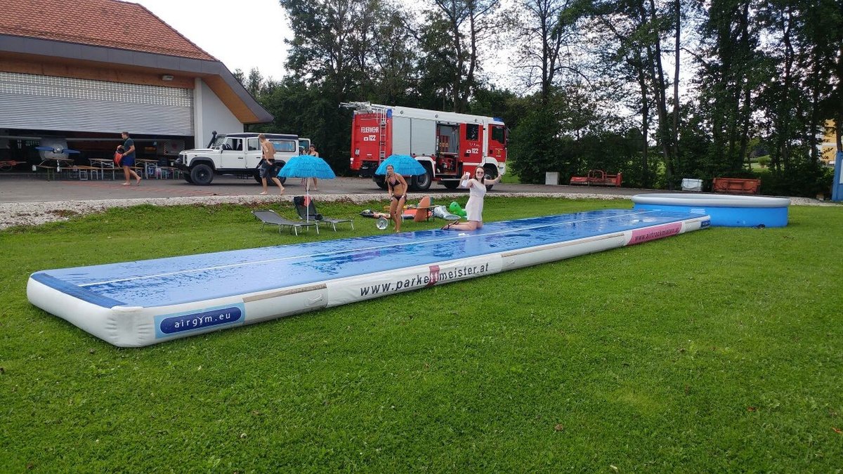Ein Airtrack ist oft nur Turnern bekannt. Es ist ca. 30 cm hoch, 15 Meter lang und mit Luft gefüllt.