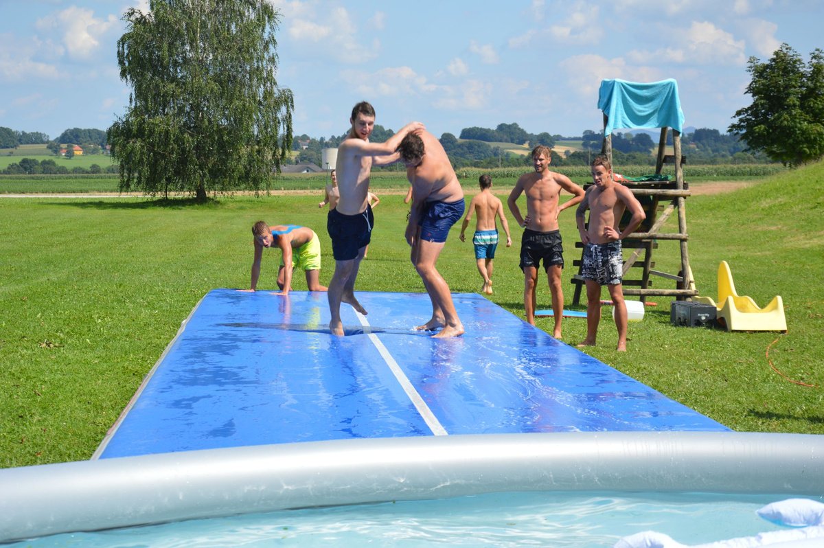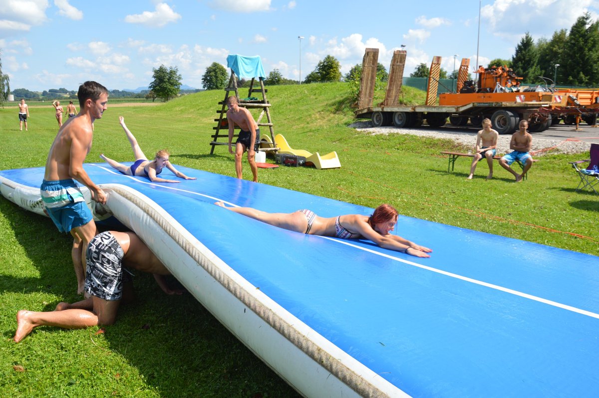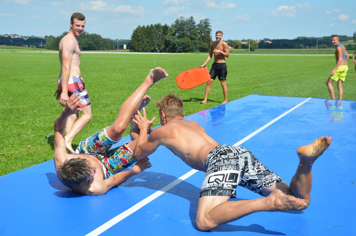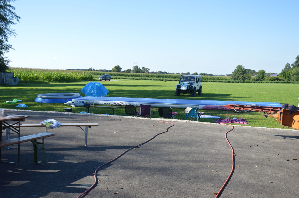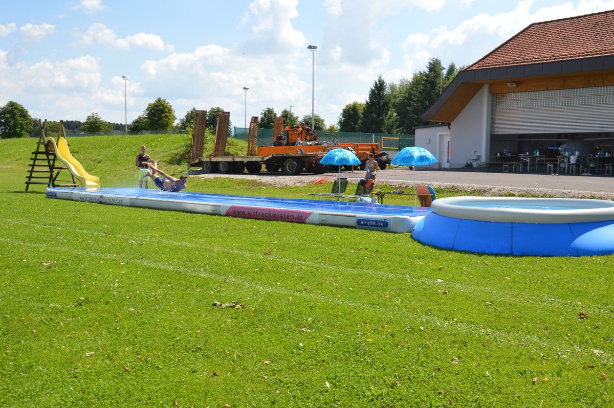 Ein Airtrack ist oft nur Turnern bekannt. Es ist ca. 30 cm hoch, 15 Meter lang und mit Luft gefüllt.