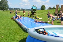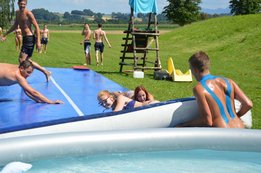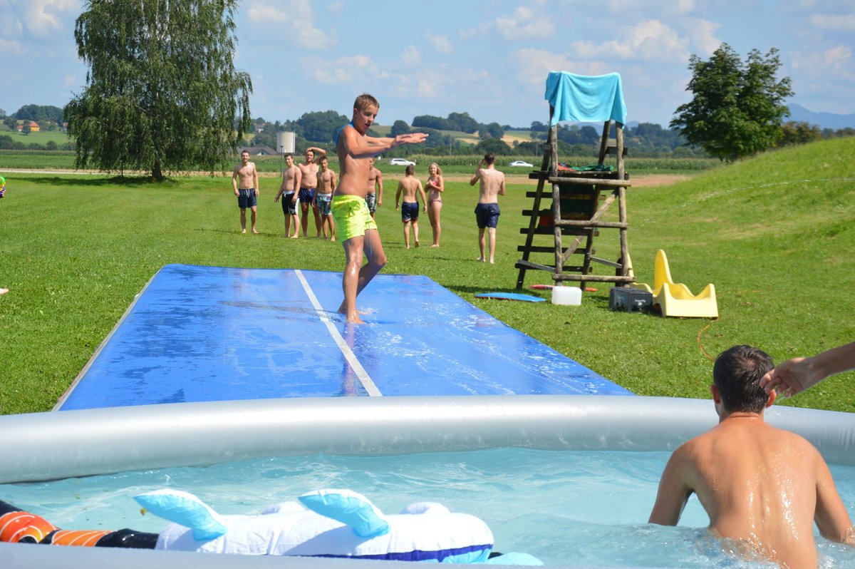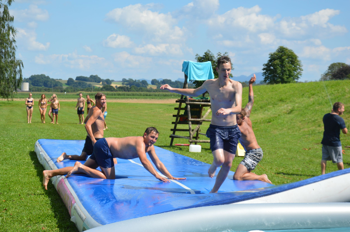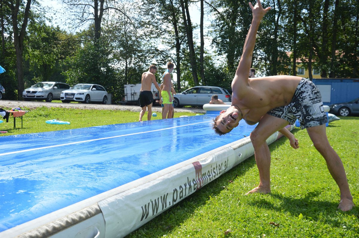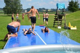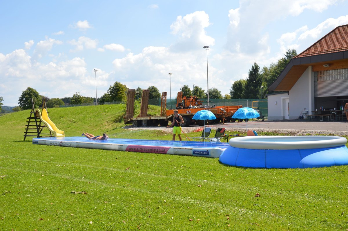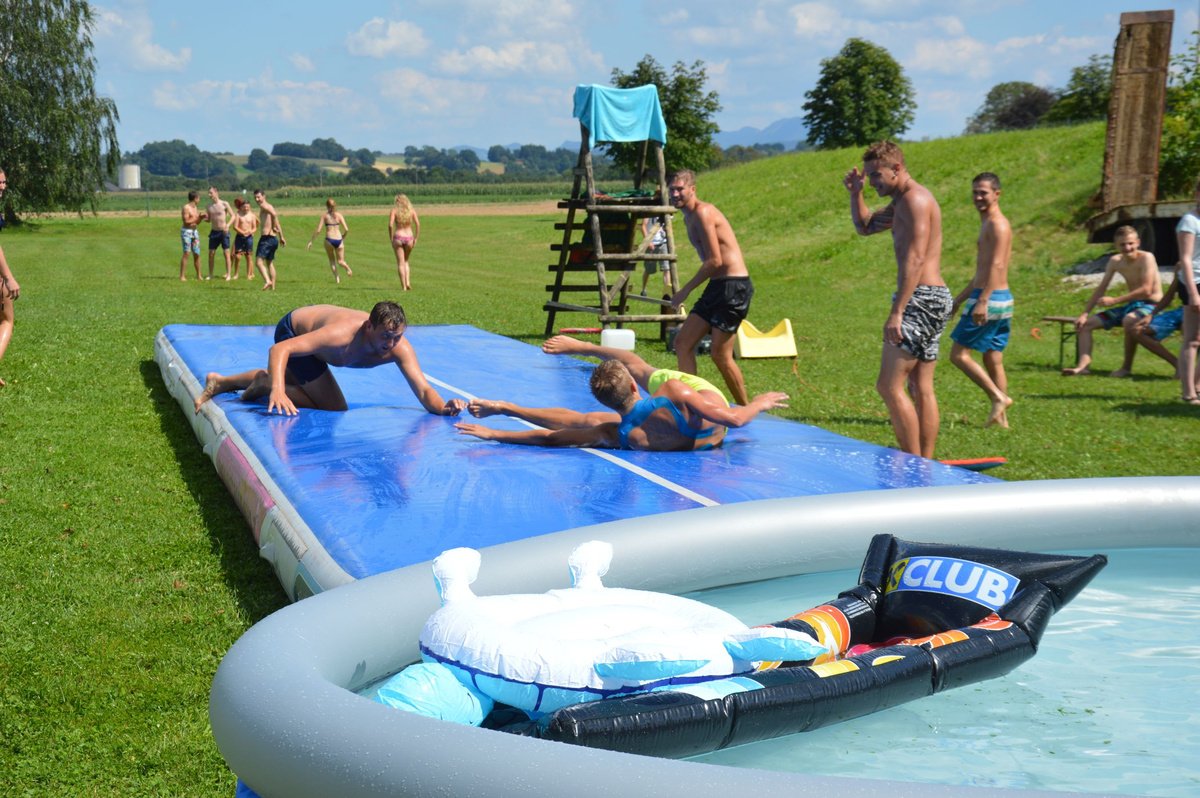 Ein Airtrack ist oft nur Turnern bekannt. Es ist ca. 30 cm hoch, 15 Meter lang und mit Luft gefüllt.